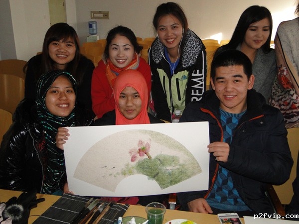 通过胡老师的讲解和表演,留学生了解了国画又称“中国画”,主要以毛笔、墨、国画颜料等画在绢、宣纸、帛上加以装裱的卷轴画。题材分为山水、花鸟、人物等。
