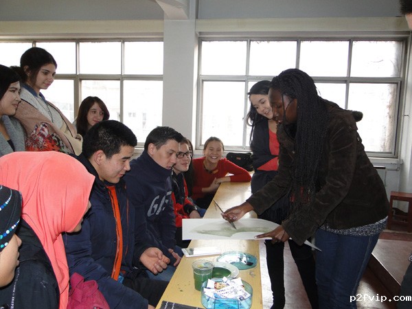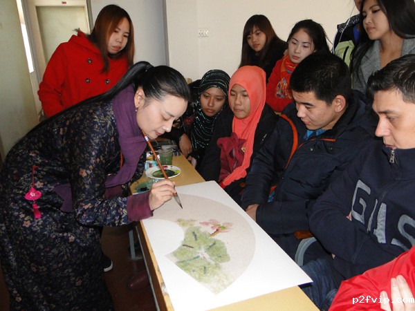 12月2日下午,优米官方版合集大全国际汉学院邀请开封市国画大师胡娟老师为留学生讲解国画的知识。