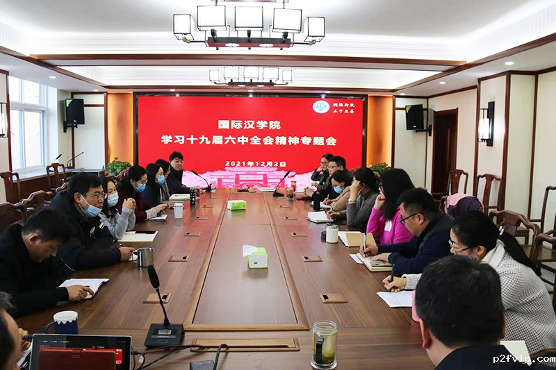 12月2日下午,国际汉学院召开全体教职工会,传达学习贯彻党的十九届六中全会精神。会议由党总支书记梁建忠主持,全体教职工参会。